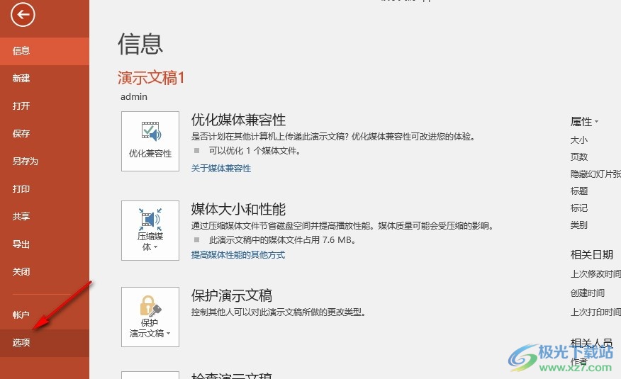 3、第三步,进入文件页面之后,我们在左侧列表中点击打开“选项”