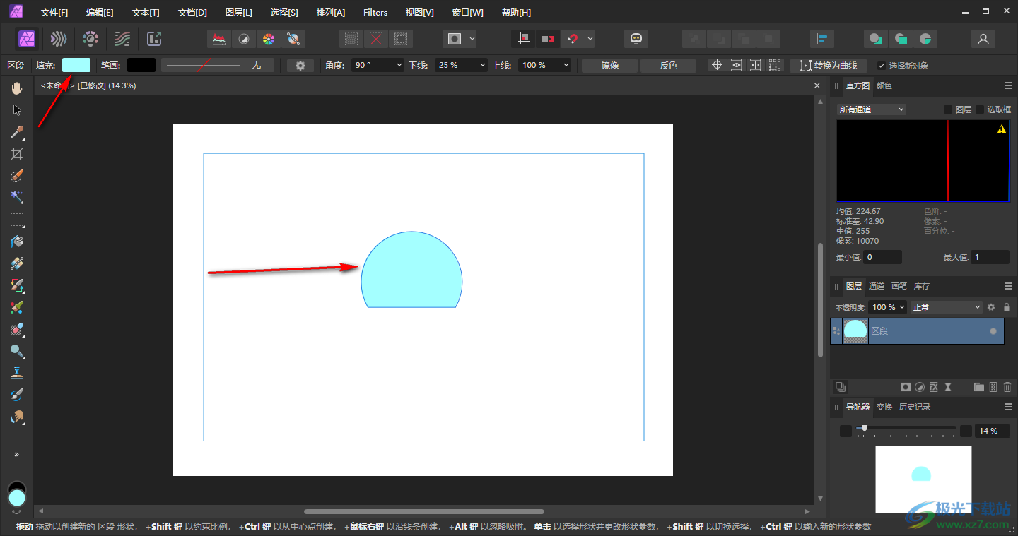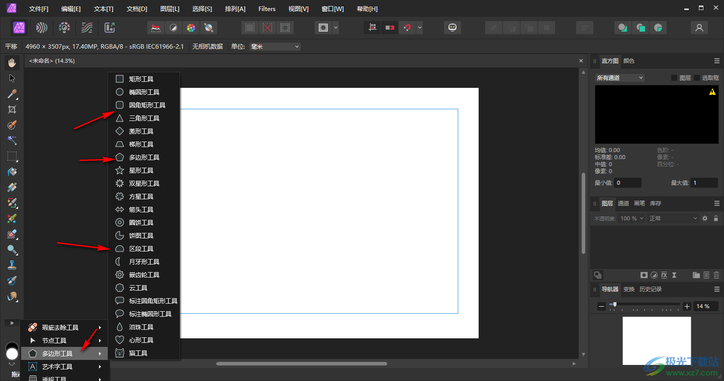 1.在Affinity Photo中新建一个空白文档,再使用鼠标点击左下角的箭头图标。