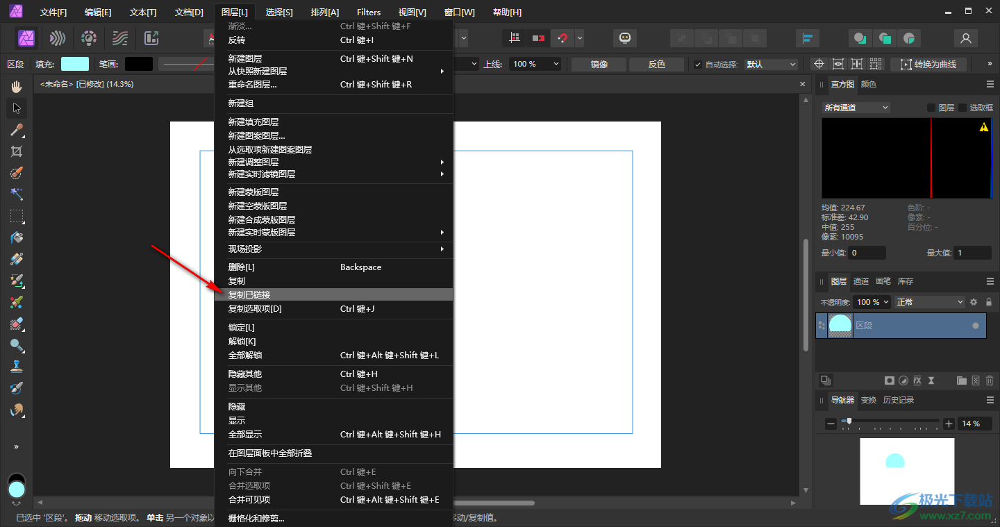 6.这时你用鼠标左键将图形拉动一下会复制出一模一样的图形出来,并且在右侧会出现一个新的图形图层,并且图层上有链接图标。