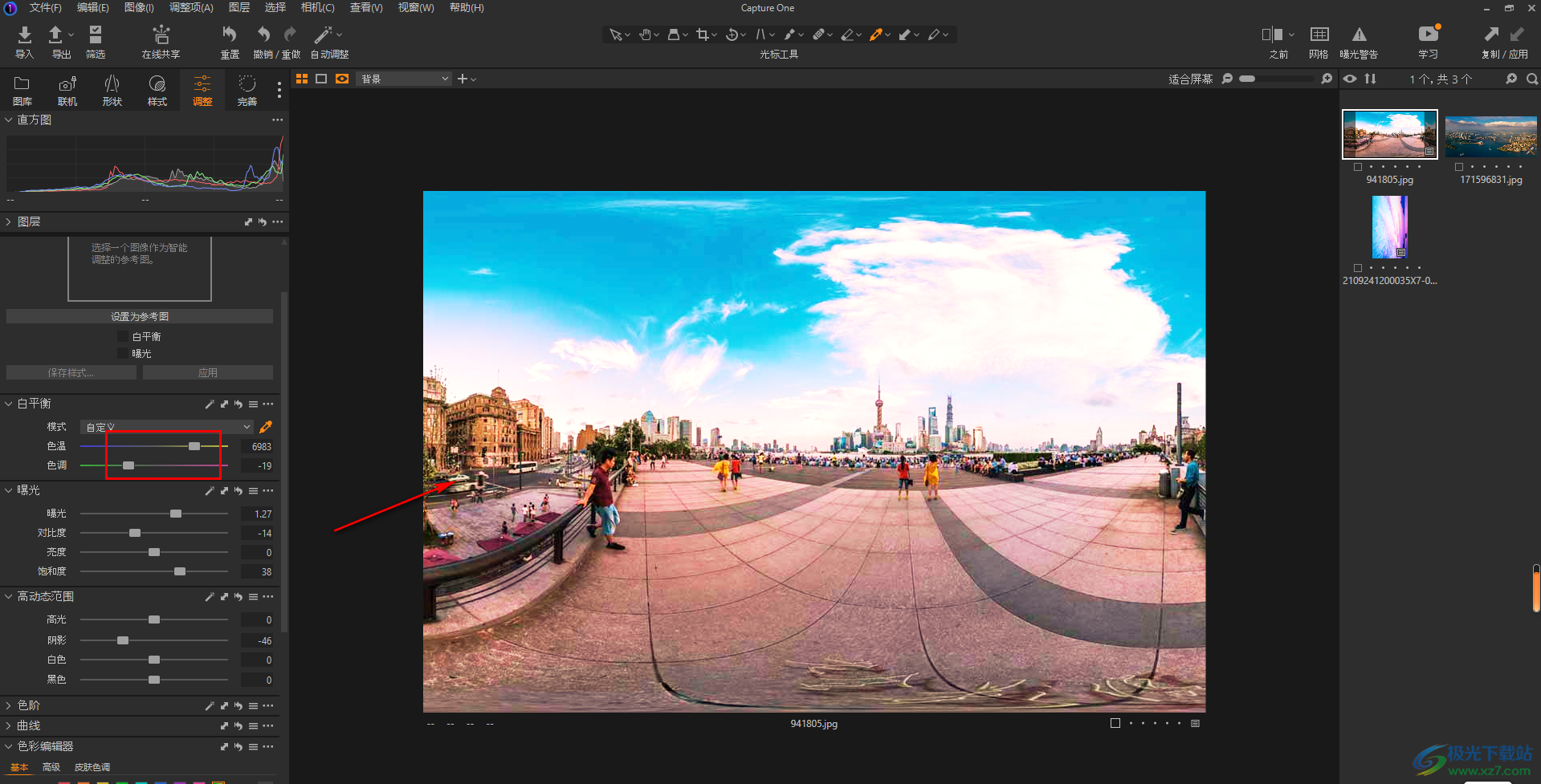 3.如果你想要为图片进行白平衡的设置,那么可以自动拉动色温以及色调的参数进行调整图片,如图所示。