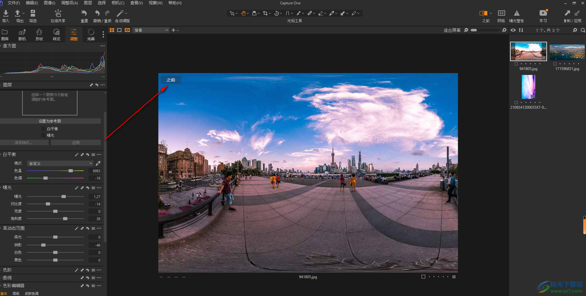 以上就是关于如何使用Capture One看原图对比的具体操作方法,当你对图片设计好相关的参数的时候,想要将原图和设计好的图片进行对比查看具体的效果,那么就可以通过将【之前】图标按钮点击打开即可进行切换对比,感兴趣的话可以操作试试。