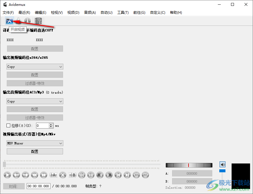 1.当你将Avidemux双击打开之后,进入到页面中点击【开启视频】按钮。