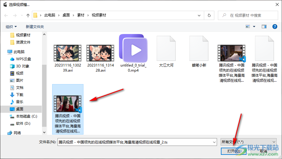 2.随后即可进入到本地文件夹页面中,在页面上找到自己需要导入的视频素材,将其点击导入即可。
