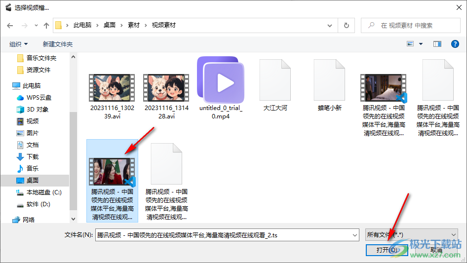 2.随后在页面上打开一个本地文件夹页面,在该页面中找到自己需要的视频素材,将视频文件添加到Avidemux中进行播放。