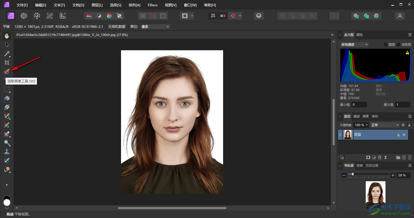 2.导入好图片之后,在左侧的位置点击【选取画笔工具】图标。