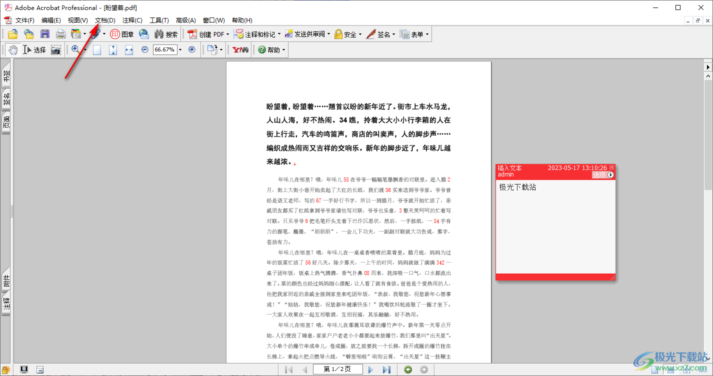 2.添加好之后,在页面顶部的菜单栏中将【文档】选项进行点击。