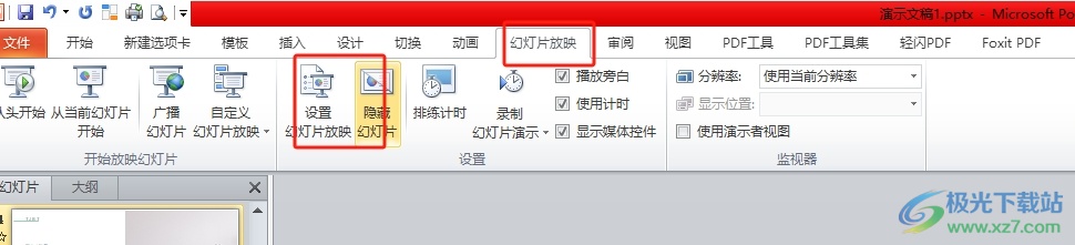 4.用户还可以点击菜单栏中的幻灯片放映选项,在弹出来的选项卡中,用户选择设置幻灯片放映选项