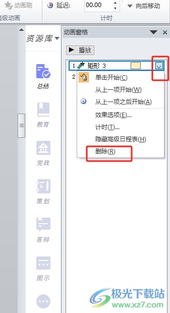 3.这时用户在右侧页面中可以看到弹出来的动画窗格,用户右击效果选项,弹出菜单后选择其中的删除即可,用户重复操作将窗格中的剩余动画依次删除