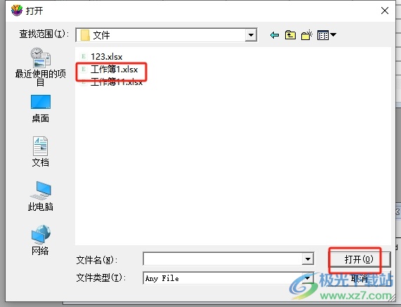 3.这时进入到文件夹窗口中,用户选择其中需要的表格文件后按下打开按钮
