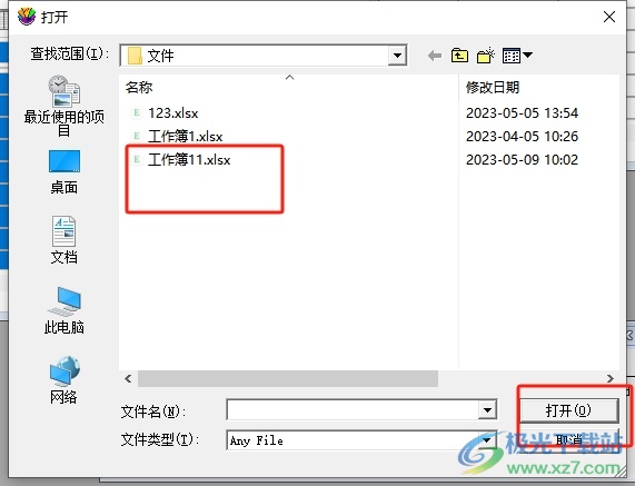 2.在打开的文件夹窗口中,用户选择表格文件后,按下底部的打开按钮