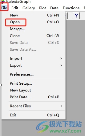 1.用户打开KaleidaGraph软件并在菜单栏中点击file选项,弹出下拉选项卡后,用户选择open选项