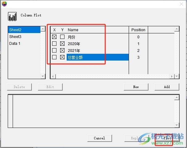 6.进入到柱形图的绘制页面上,用户设置好x轴和y轴代表的值后,按下右下角的plot按钮即可解决问题