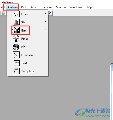 4.接着用户在页面上方的菜单栏中点击gallery选项,在弹出来的下拉选项卡中,用户选择其中的bar选项,也可以选择其它的图表类型
