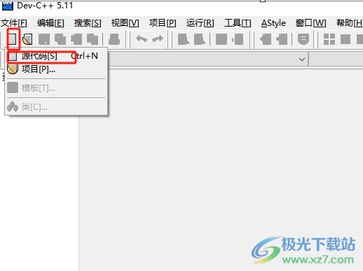 1.用户在电脑上打开dev c++软件,并点击工具栏中的新建选项,弹出下拉选项卡中点击源代码选项