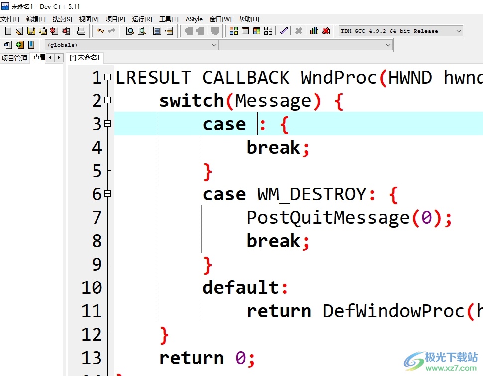 1.用户在电脑上打开dev c++软件,并来到代码编辑页面上来进行设置