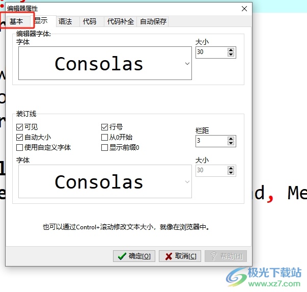3.这时进入到编辑器属性窗口中,用户在选项卡中点击基本选项卡,将会显示出相关的功能选项