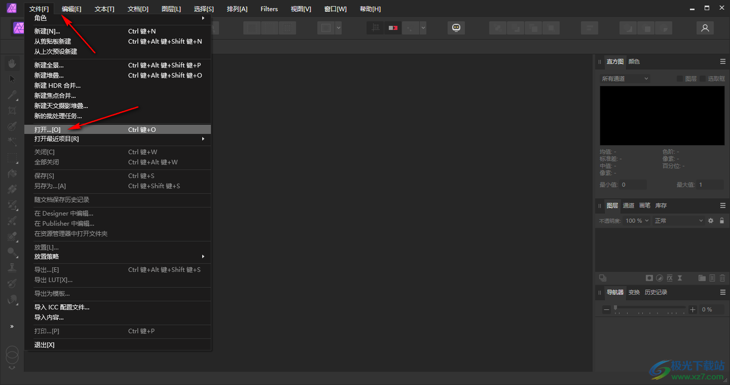 1.首先,我们需要通过【文件】-【打开】选项,将我们的图片添加进来进行设计。