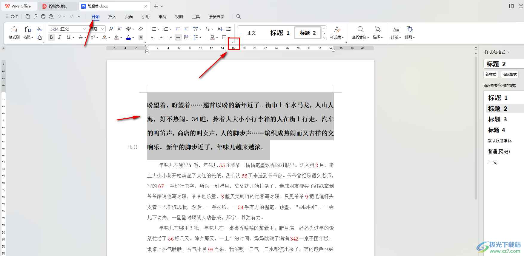 4.随后,我们就可以查看到刚刚选中的文字已经悬挂缩进了两个字符了。