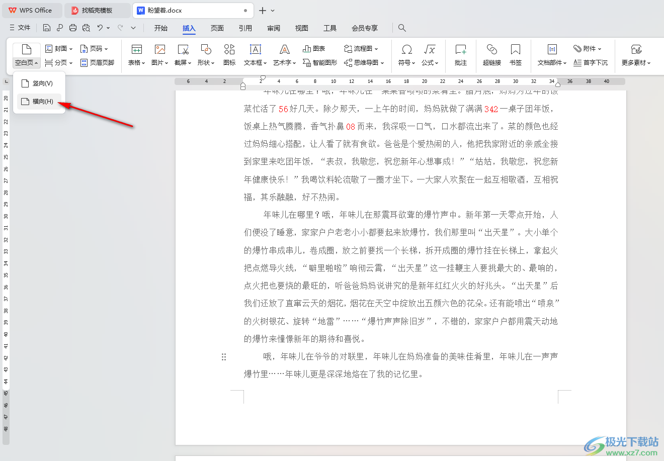 我们在wps word文档中编辑文档内容的时候,会需要插入新的页面的情况,有些时候需要编辑的内容没有编辑完成,于是就会在文档中插入空白页面的情况,那么你可以选择插入横向的空白页,或者是插入竖向的空白页,那么如何添加空白页面呢,我们需要打开页面布局选项菜单,在工具栏中就可以选择空白页进行插入了,需要将鼠标放置到要插入空白页面的位置,再选择空白页进行添加即可,下方是关于如何使用WPS Word文档添加横向空白页的具体操作方法,如果你需要的情况下可以看看方法教程,希望对大家有所帮助。