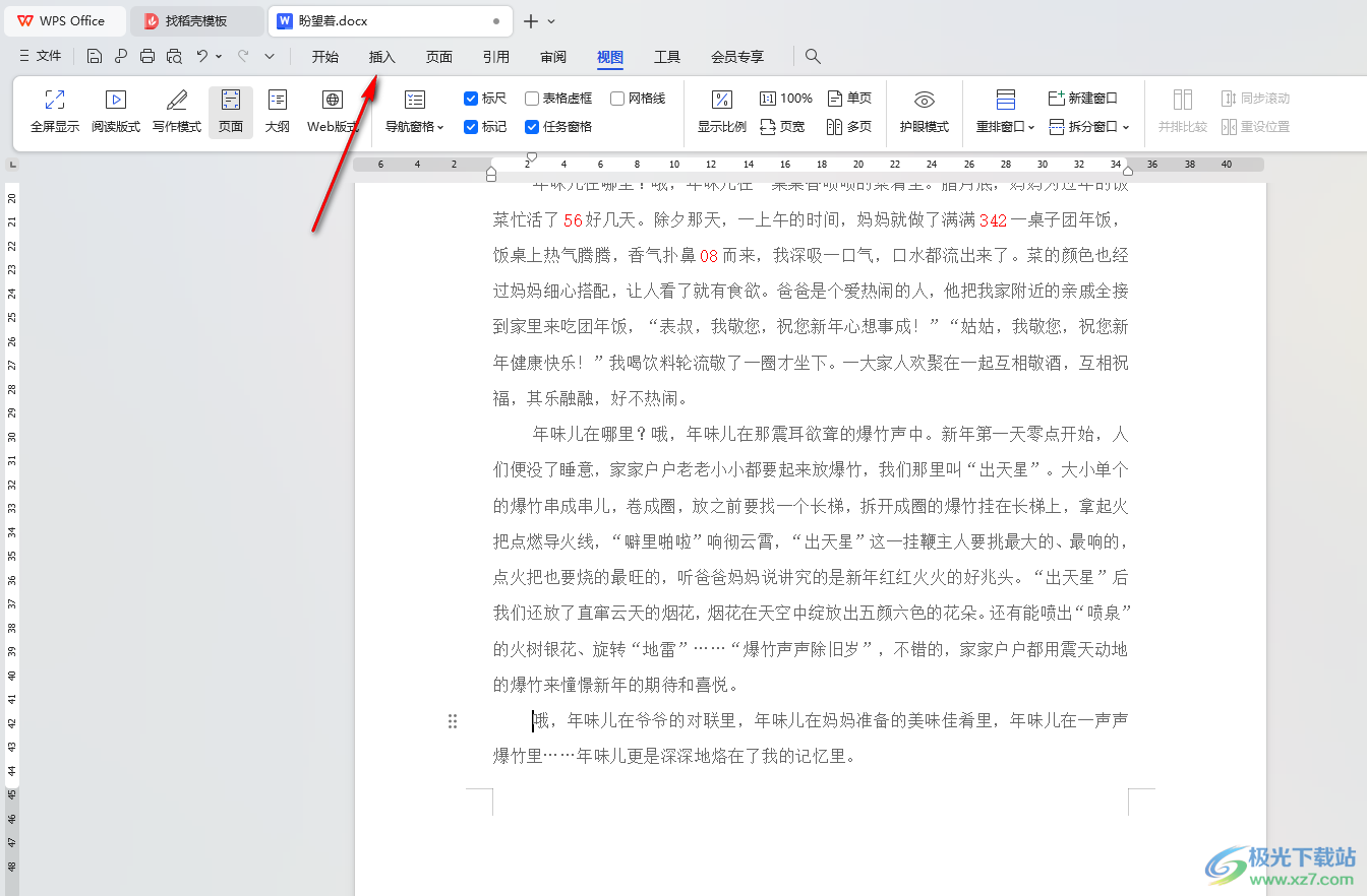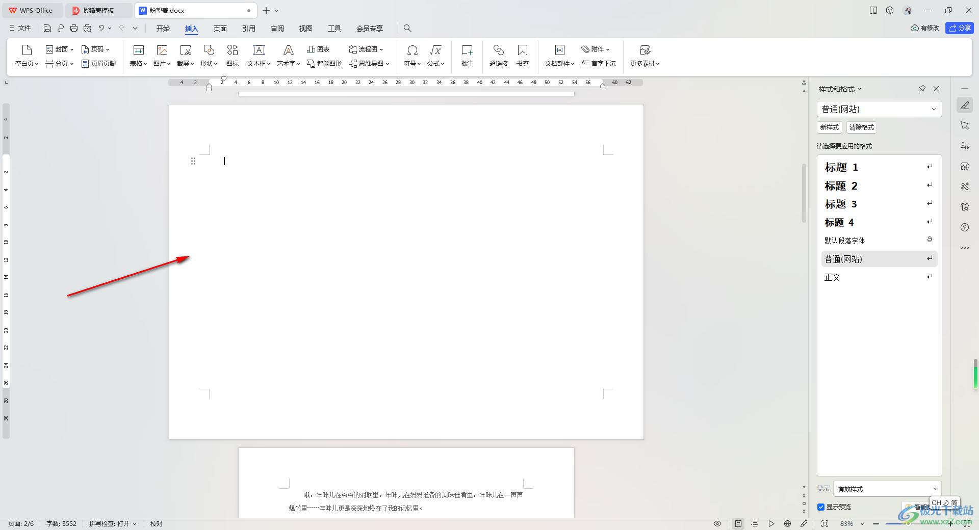 2.这时,即可在页面顶部的位置点击一下【插入】,我们需要在插入的工具栏中进行相应的设置。