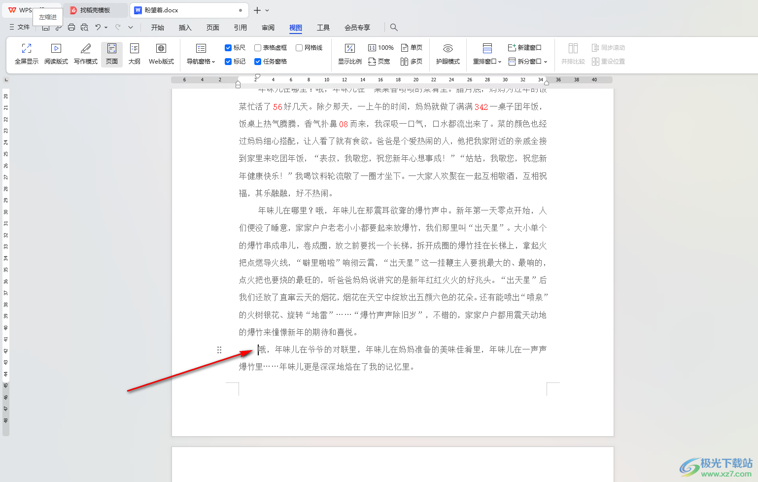 1.打开了需要添加空白页的文档,之后将鼠标定位到要添加的横向空白页的位置,如图所示。