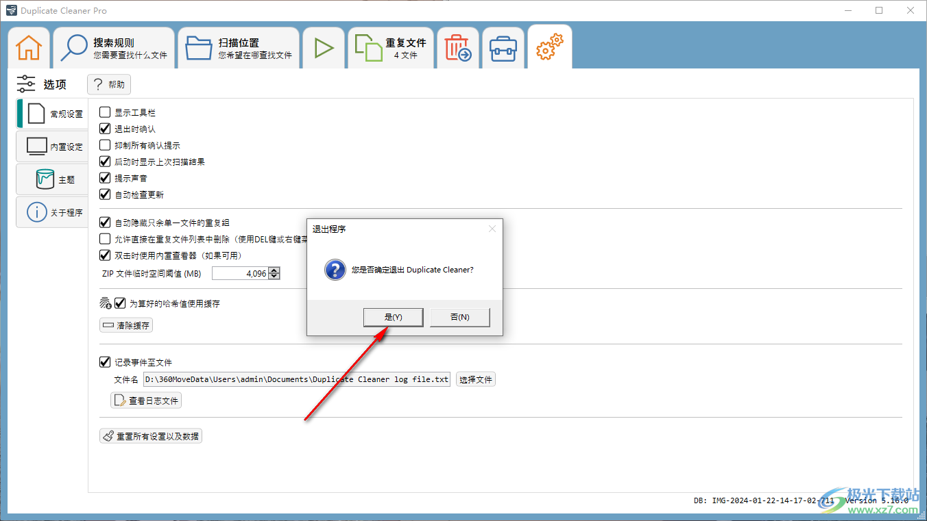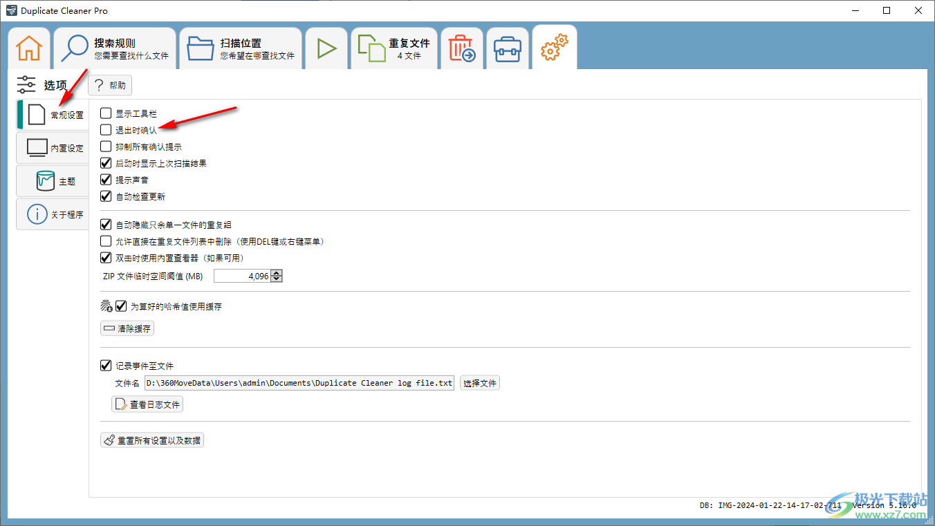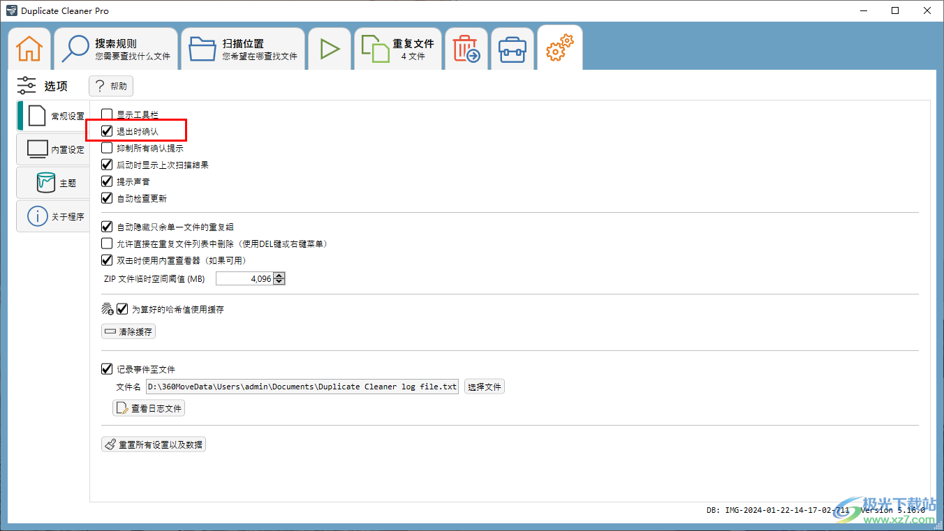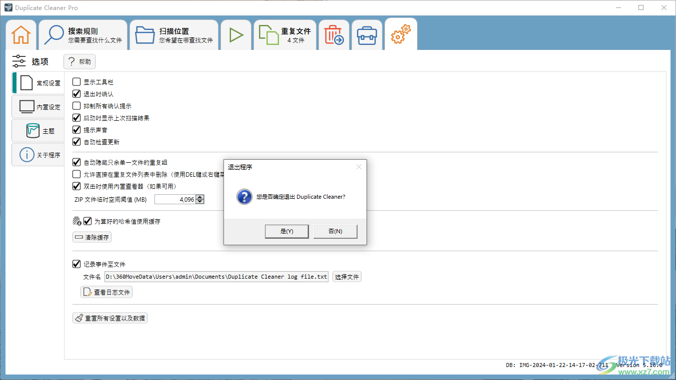 我们在使用duplicate cleaner进行重复文件的扫描时,有些时候,由于操作的速度过快,导致会不小心将该软件程序关闭了,那么我们正在扫描的文件就可能会被暂停,可能还需要打开该文件进行重新扫描,对此,很多小伙伴觉得这样会非常麻烦,为了避免这样的问题发生,可以设置在关闭程序的时候,弹出确认的提示,那么就不怕一键关闭该软件了,下方是关于如何使用duplicate cleaner设置退出程序时确认的具体操作方法,如果你需要的情况下可以看看方法教程,希望对大家有所帮助。
