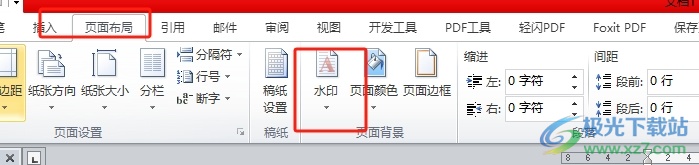 2.接着在页面上方的菜单栏中点击页面布局选项,将会显示出相关的选项卡,用户选择其中的水印选项