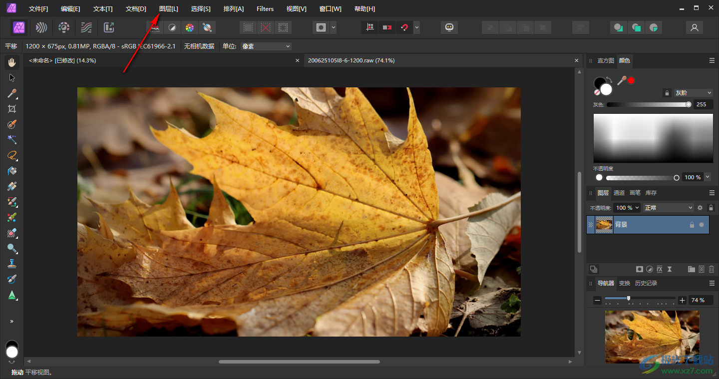 2.导入好图片之后,点击页面菜单栏中的【图层】选项。