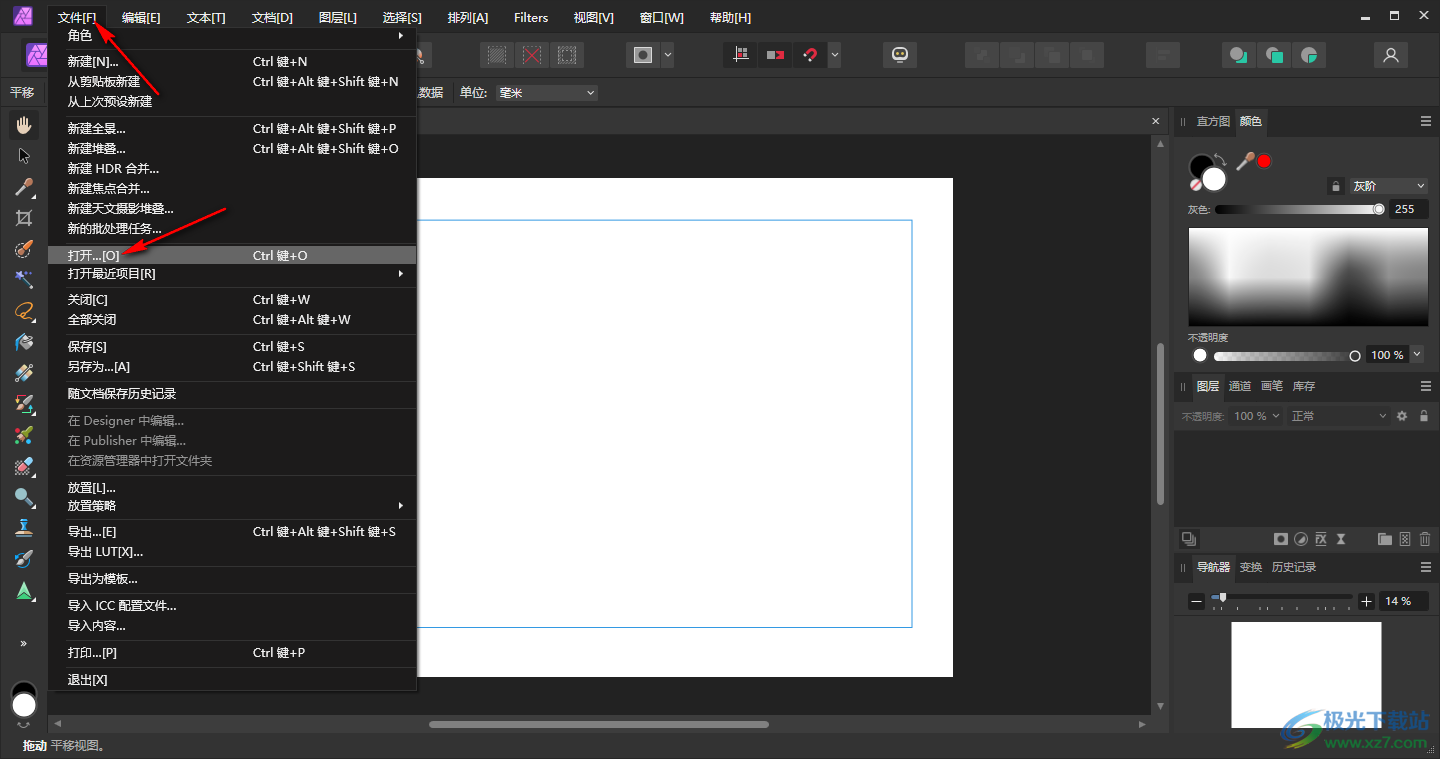 1.当我们进入到Affinity Photo2之后,点击【文件】-【打开】选项,将图片添加进来。