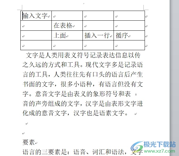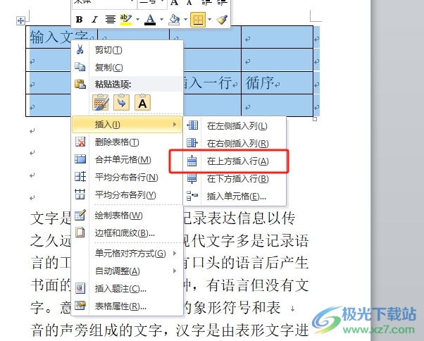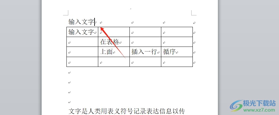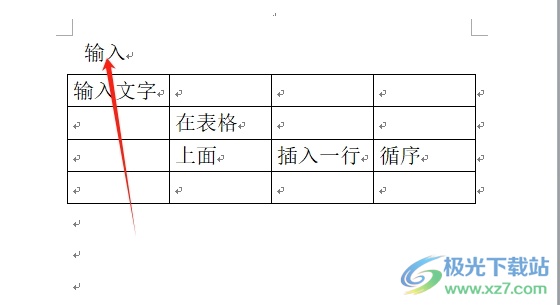 3.完成上述操作后,用户就可以直接在表格上面加一行字了,效果如图所示