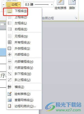 7.在弹出来的下拉选项卡中,用户保留下框线后,将其余框线保留下来即可解决问题