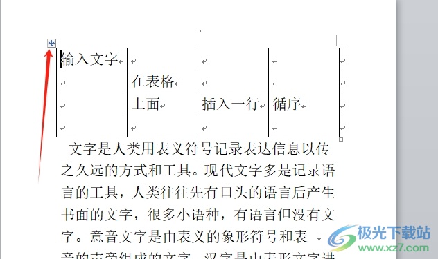 2.接着用户点击表格左上角的十字图标,并向下移动表格来空出一行