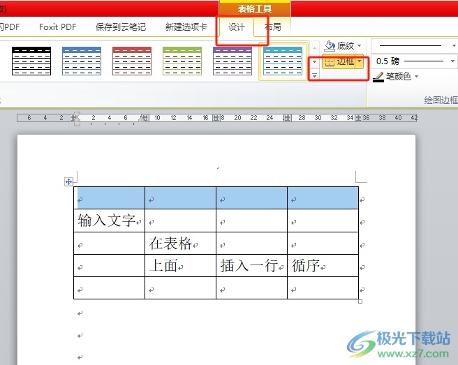 6.然后用户需要将插入的新行框线删除,直接在表格工具的设计选项卡中点击边框选项