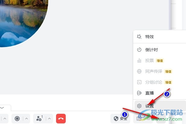 3、第三步,开始线上会议之后,我们在页面右下角先打开“...”图标,然后在菜单列表中点击打开“设置”选项