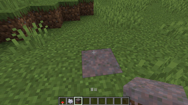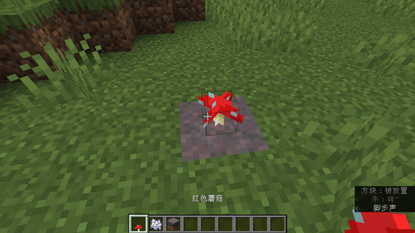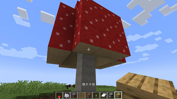 2、摆红色蘑菇:菌丝上放个红色蘑菇,这是迷你房子的“屋顶雏形”。