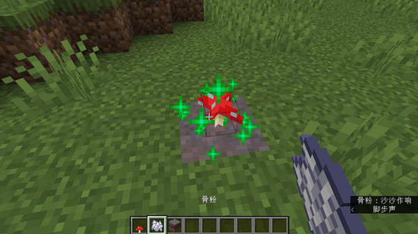 3、撒骨粉催熟:蘑菇顶撒骨粉,很快会长成大红伞,白杆杆直立。