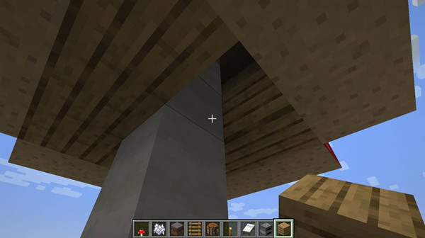 4、铺木板留出口:蘑菇底部围一圈木板,顶部留个缺口当门。