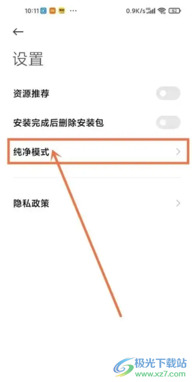 用户越来越离不开手机,现在不管是在做什么事情,都会将手机带在身边,这是因为用户遇到的大部分事务,都可以通过手机来解决,给用户带来了许多方便,因此手机也就成为了用户日常生活的必需品,当用户在众多手机中选择使用小米手机时,就可以根据需求来解决部分事务,这样能够避免许多没必要的麻烦,当然用户在使用的过程中,也会遇到一些难题,例如有用户想要关闭应用的纯净模式,但是不知道怎么来操作,其实这个问题很好解决,用户进入到安装软件的设置页面中找到纯净模式,接着进入到详情页面中来将其开启就可以了,那么接下来就让小编来向大家分享一下小米手机关闭应用纯净模式的方法步骤吧。