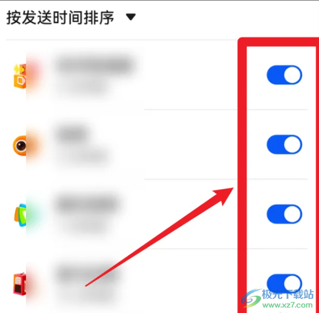 3.最后用户来到批量管理页面中,直接将自己需要接收消息提醒的应用右侧的开关标识打开即可设置成功
