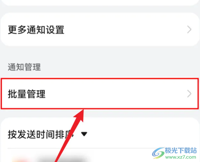2.接着在弹出来的通知页面中,可以看到有更多通知设置、批量管理、相关应用等选项,用户直接选择批量管理选项