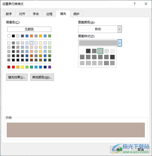 以上就是小编整理总结出的关于Excel添加底纹的方法,我们用Excel打开一个表格文档,然后在文档页面中选中一个单元格,右键单击选择设置单元格格式选项,在该选项页面中,我们进入填充页面,最后选择单元格的颜色再打开图案样式选项选择一个底纹图案即可,感兴趣的小伙伴快去试试吧。