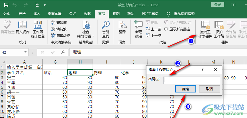 3、第三步,如果是因为设置了密码,那么我们需要点击“撤销工作表保护”选项,然后在弹框中输入密码,解除保护