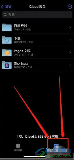 1.用户在iPhone手机桌面上打开文件应用, 接着需要将页面切换到的浏览页面上