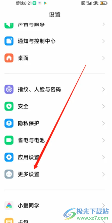 1.用户打开小米手机并在桌面上带你设置图标,将会进入到设置页面上,用户选择其中的更多设置选项
