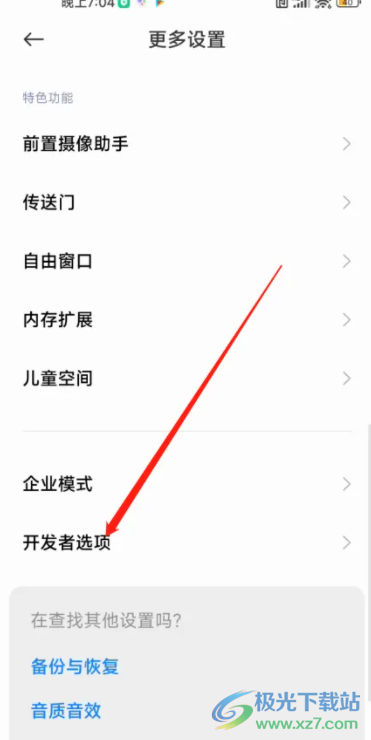 2.这时用户在更多设置页面中,会发现有儿童空间、无障碍、自由窗口等选项,需要选择底部的开发者选项