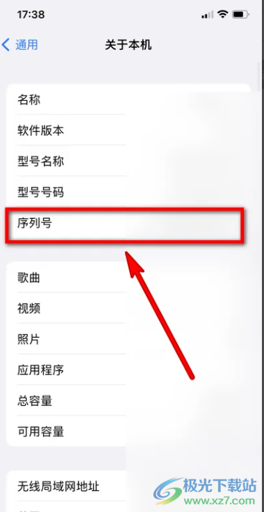 3.这时用户在打开的关于本机页面中,直接选择序列号选项并进入到新页面即可获取本机的保修期信息了