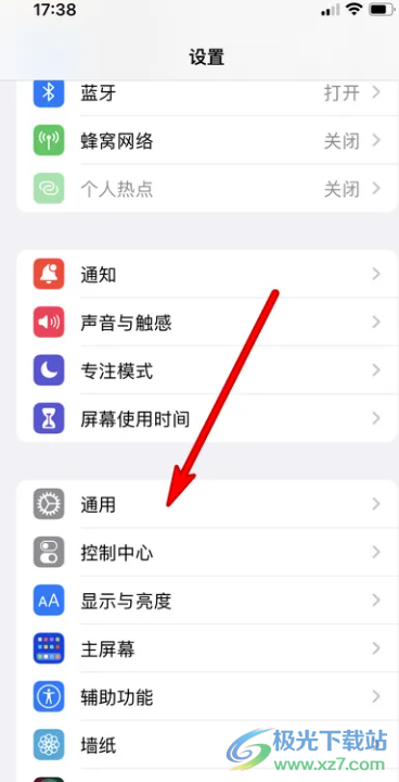 1.用户解锁iPhone手机并在桌面上点击设置图标,进入到设置页面中,需要用户选择通用选项
