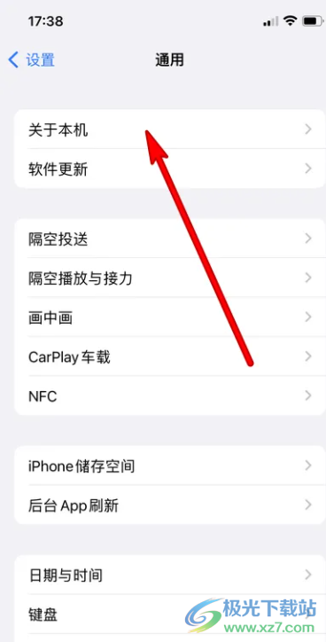 2.页面发生切换,用户来到通用页面中可以看到有关于本机、软件更新以及隔空投送等选项,需要点击其中的关于本机选项
