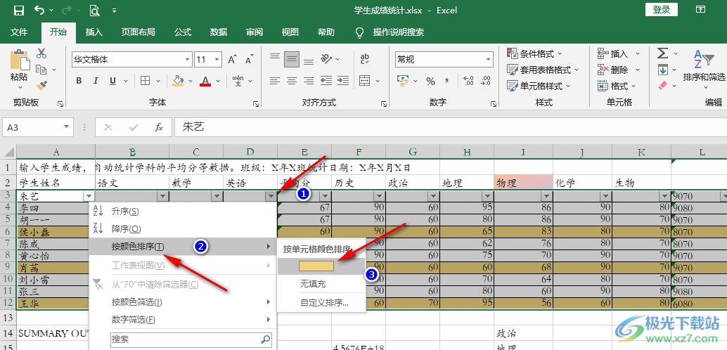 在excel中,我们可以使用各种工具对表格进行编辑,当我们拿到一个表格文档,需要将表格中带有颜色,被标记的行进行删除时,该如何快速删除分散的行呢。其实很简单,我们只需要使用Excel软件中的筛选工具,将筛选设置为按颜色分类,表格中带有颜色的行就会自动聚集在一起,此时我们再选中这些行,然后右键单击选择“删除”选项即可,这样删除不需要的行,十分的方便快捷。有的小伙伴可能不清楚具体的操作方法,接下来小编就来和大家分享一下Excel快速删除指定行的方法。