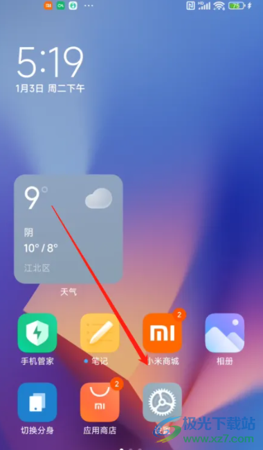 1.用户解锁小米手机,点击桌面上的设置图标进入,将会进入到设置页面